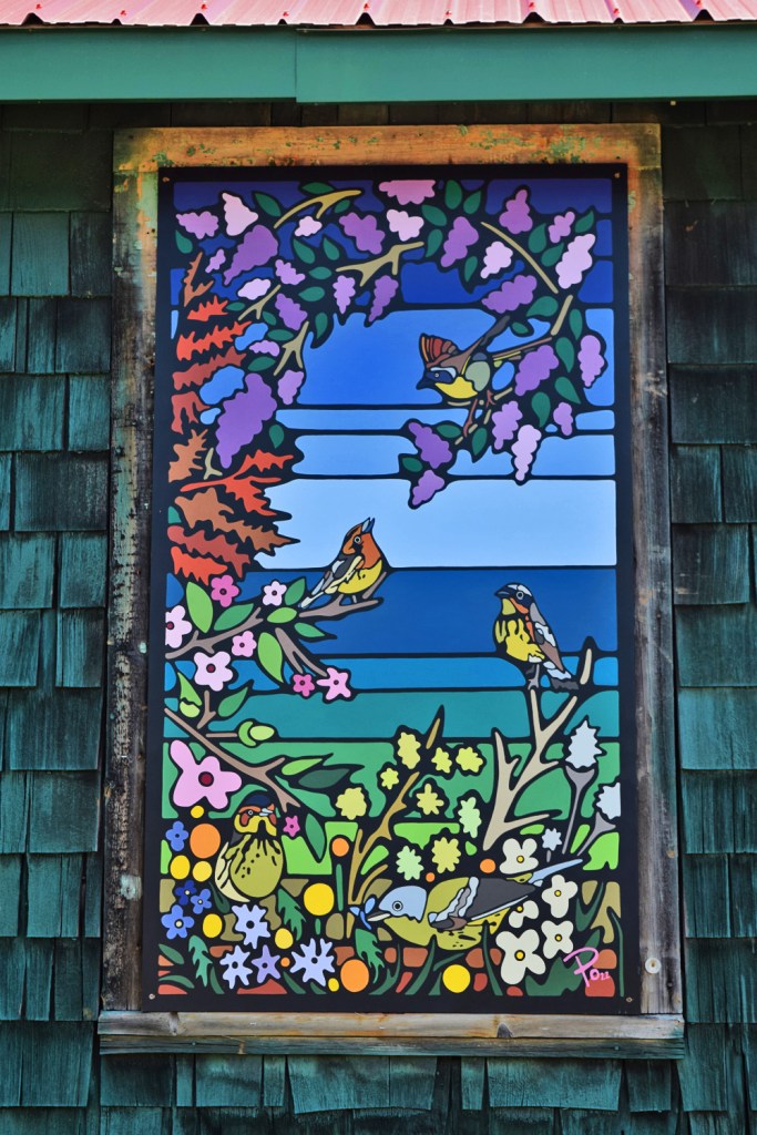 To read about my experience at the mural’s unveiling ceremony at Base 31 click on this link: Portia Po Chapman Mural “Warbler Watching” – Photos of Unveiling Ceremony in Aviator’s Garden at Base 31 PEC, Picton, Ontario, July 9, 2022