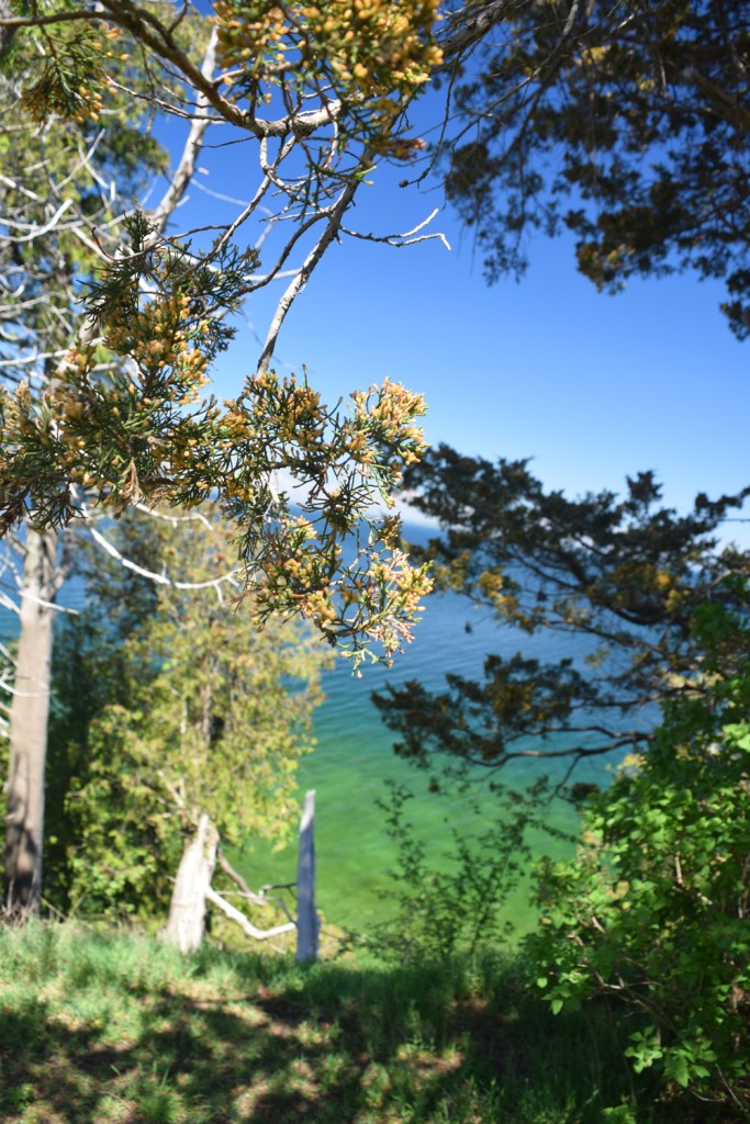 The above images compiled some of my research prior to designing the mural. I like to immerse myself in the space, story or activity that I am painting. These photographs were take in early May 2022 during the Prince Edward County Birding Festival along Long Point Rd. You can see how my visit influenced the subject matter that I chose to include. The photograph immediately below was taken at the Lookout. As soon as I stepped out of the car, the green in the lake was awe inspiring. I knew at that time, I would paint the lake and sky in the background. Prince Edward Point is so beautiful, one cannot help but paint and/or photograph the landscape and waterscape.