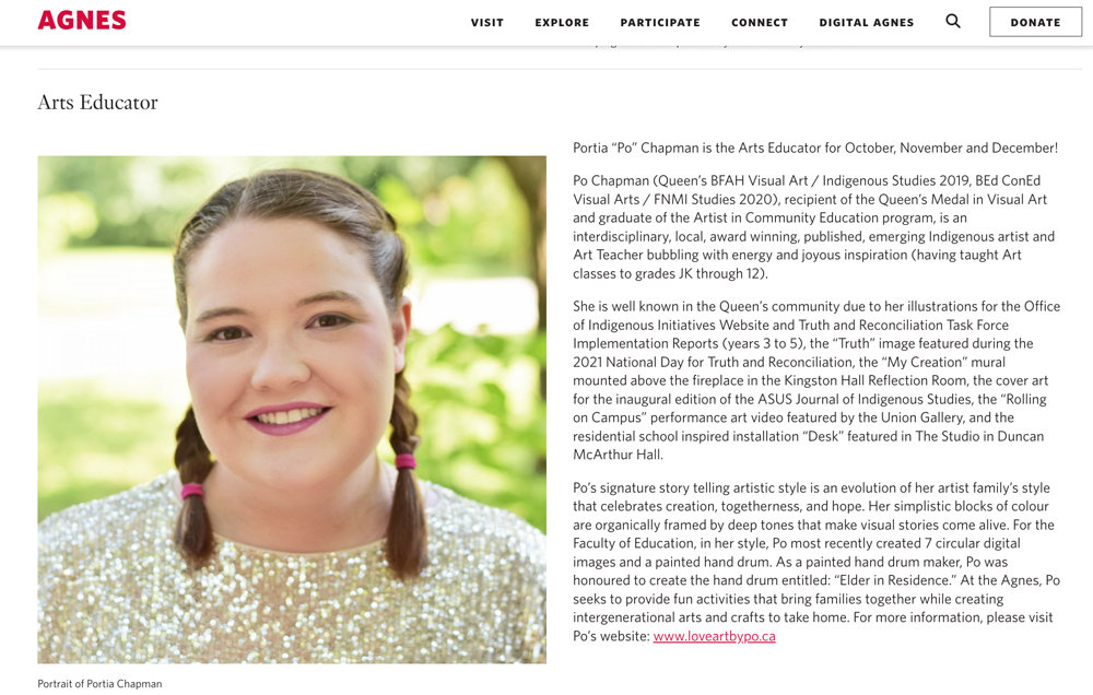 Portia “Po” Chapman Becomes Agnes Etherington Art Centre Art Educator
